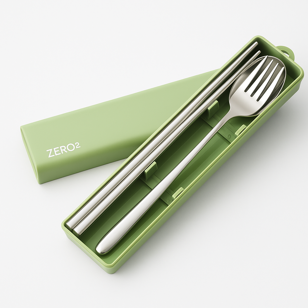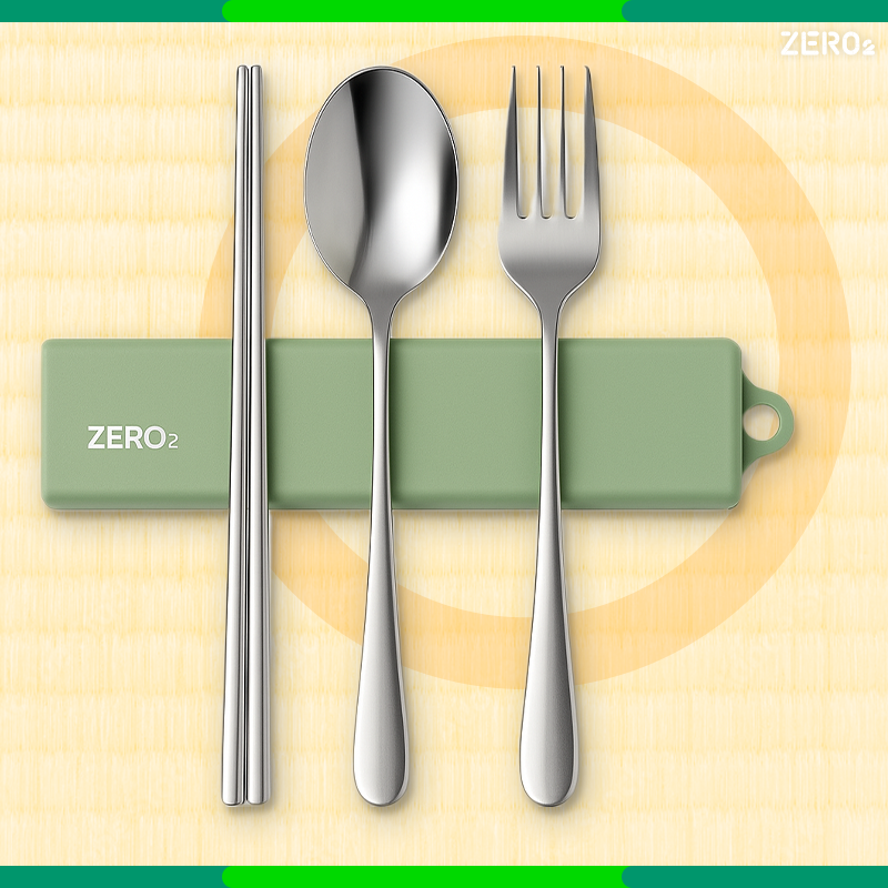 這款便攜餐具套裝包括:筷子、匙羹、叉子各一,全部採用 食品級 SUS 304 不鏽鋼 製造,堅固耐用、易清洗、防鏽抗菌。